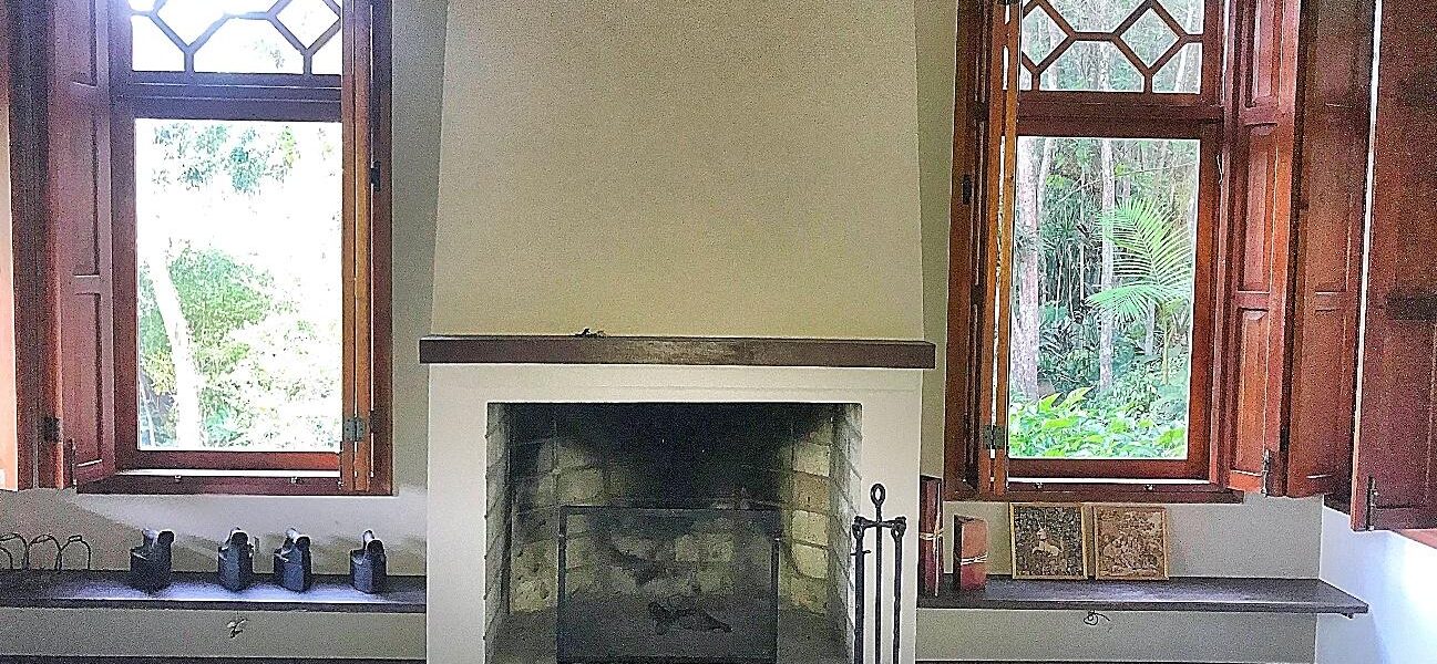 - – Piso térreo: 2 halls de entrada, sala de estar com lareira, sala íntima, biblioteca, escritório, quarto de hóspede, cozinha, área de serviço, despensa e banheiro.