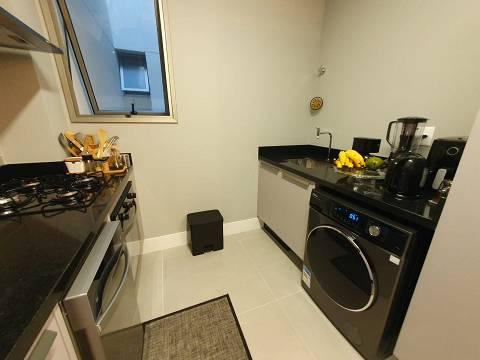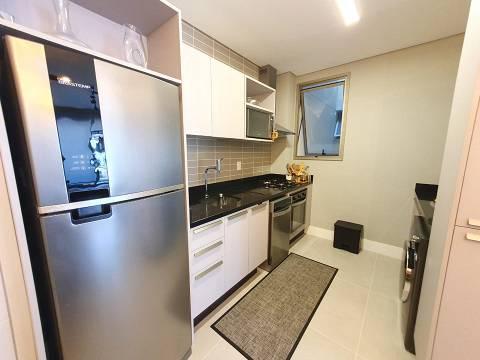- – Sala de Estar e Cozinha Integradas: Espaço aconchegante e funcional, com cozinha montada e armários modernos.