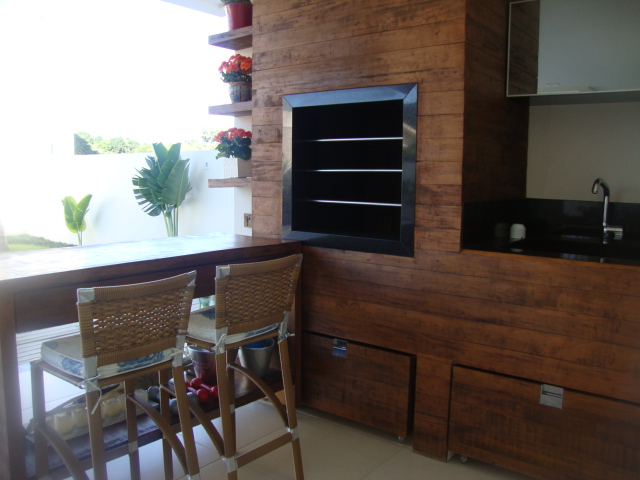 Casa em alvenaria, dois pisos, com sala com 3 ambientes, lareira, lavabo, copa-cozinha (com finos armários), 5 suítes, 1 master com closet e banheira de hidromassagem área de serviço, dependência de empregada, espaço gourmet com churrasqueira,piscina e lindo jardim.Garagem para 3 carros.
