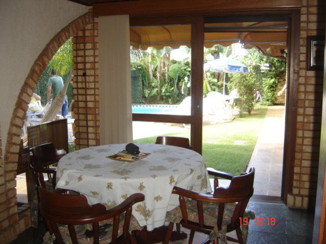 Residência com lindo jardim, 1 quadra da praia, sendo sala de jantar, sala de estar, sala de t.v., lavabo, piscina, cozinha montada, dependência de empregada, churrasqueira, 4 suítes (3 com varanda)e garagem para 2 carros.
