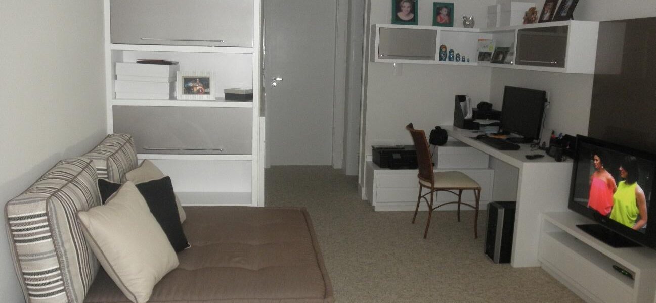 - – Home-office com banheiro privativo, que pode ser facilmente revertido para uma suíte de hóspedes.