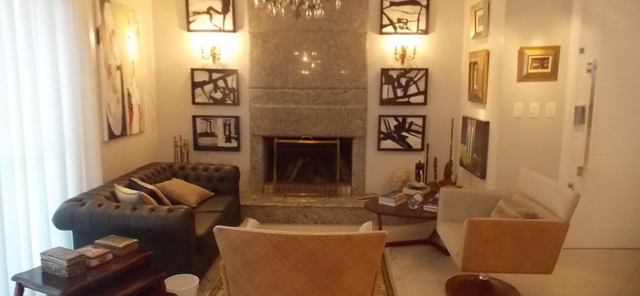 - – Amplo Living: Espaçosa sala de estar com lareira à carvão, criando um ambiente acolhedor e elegante.