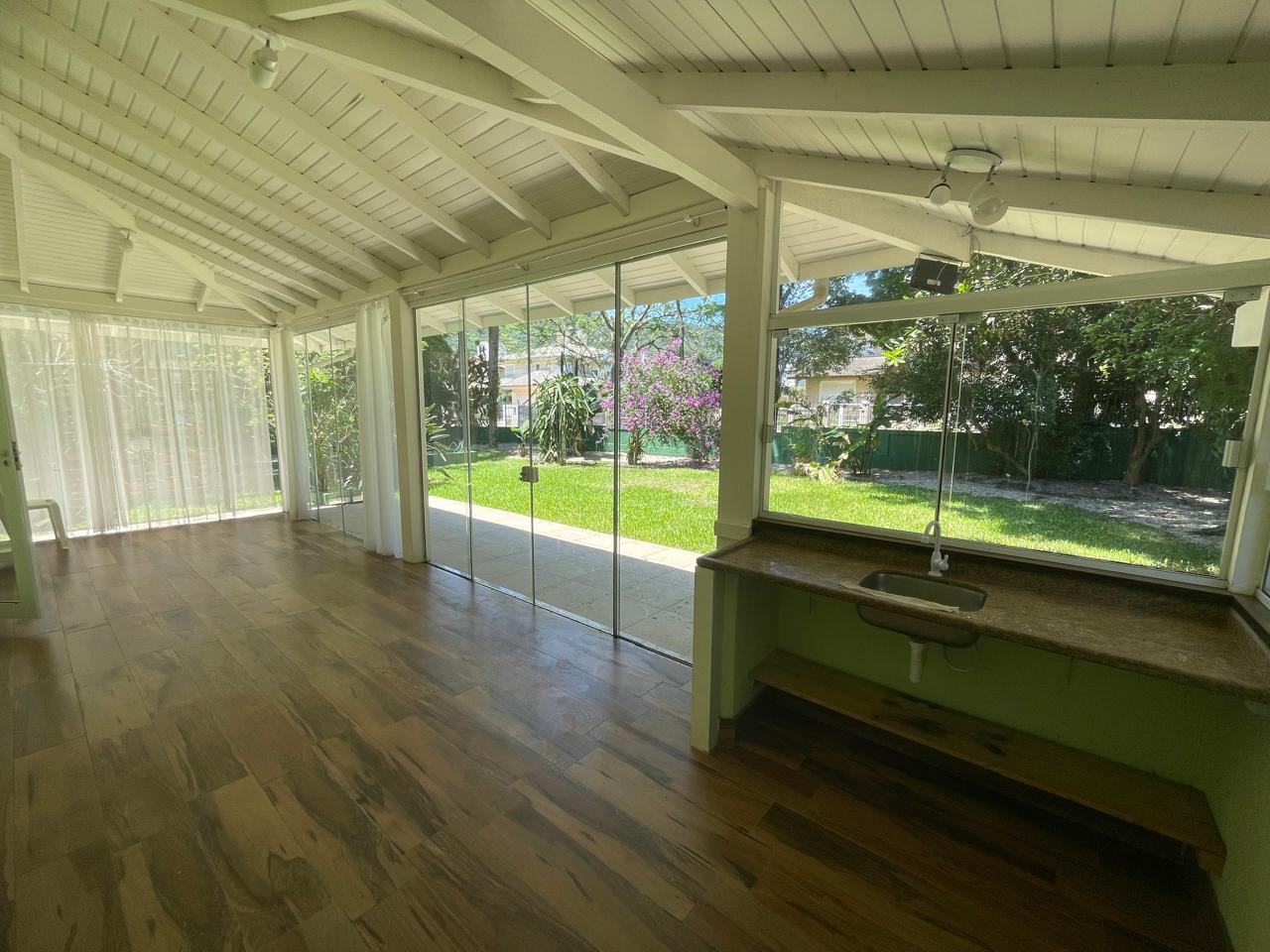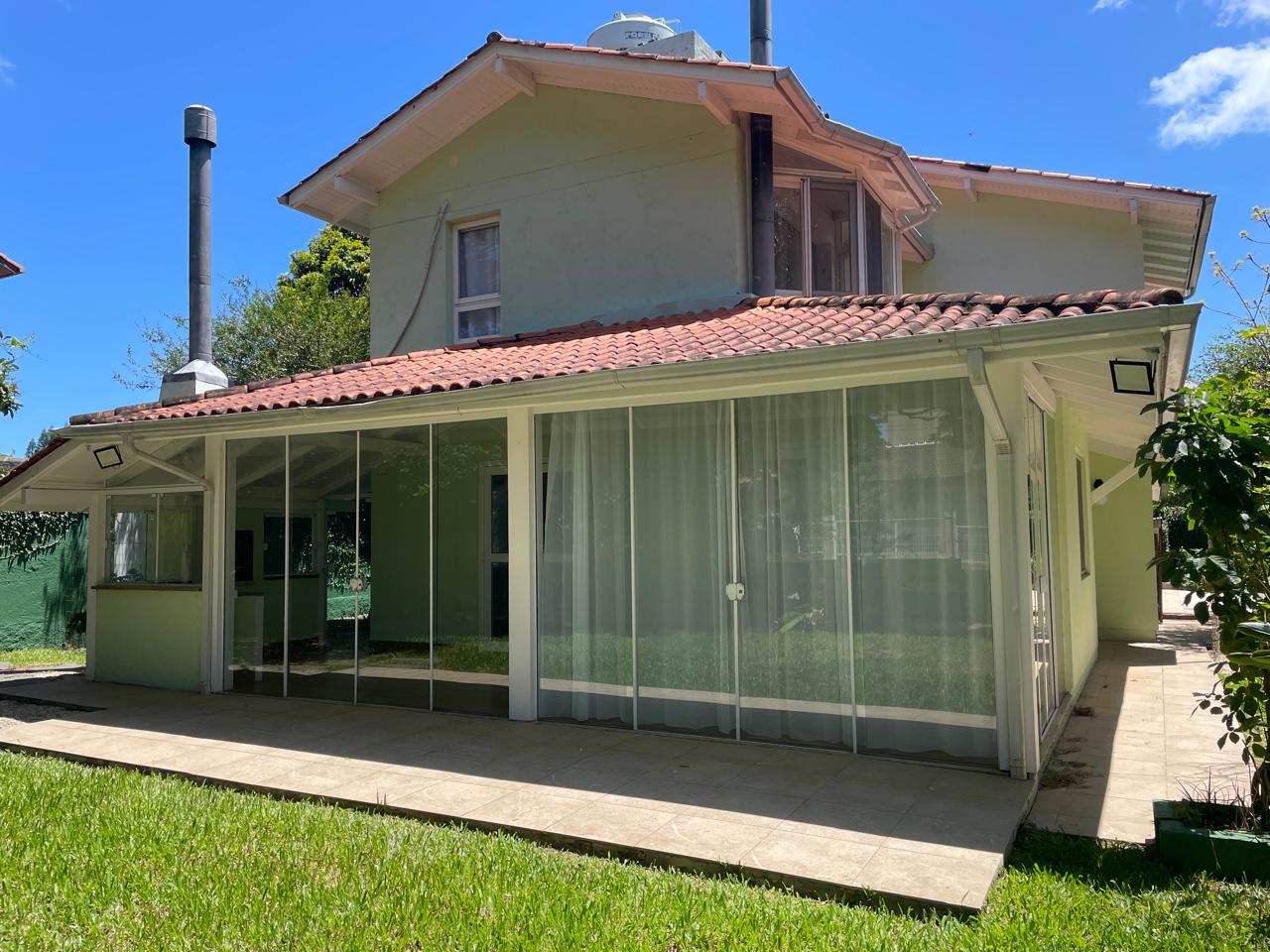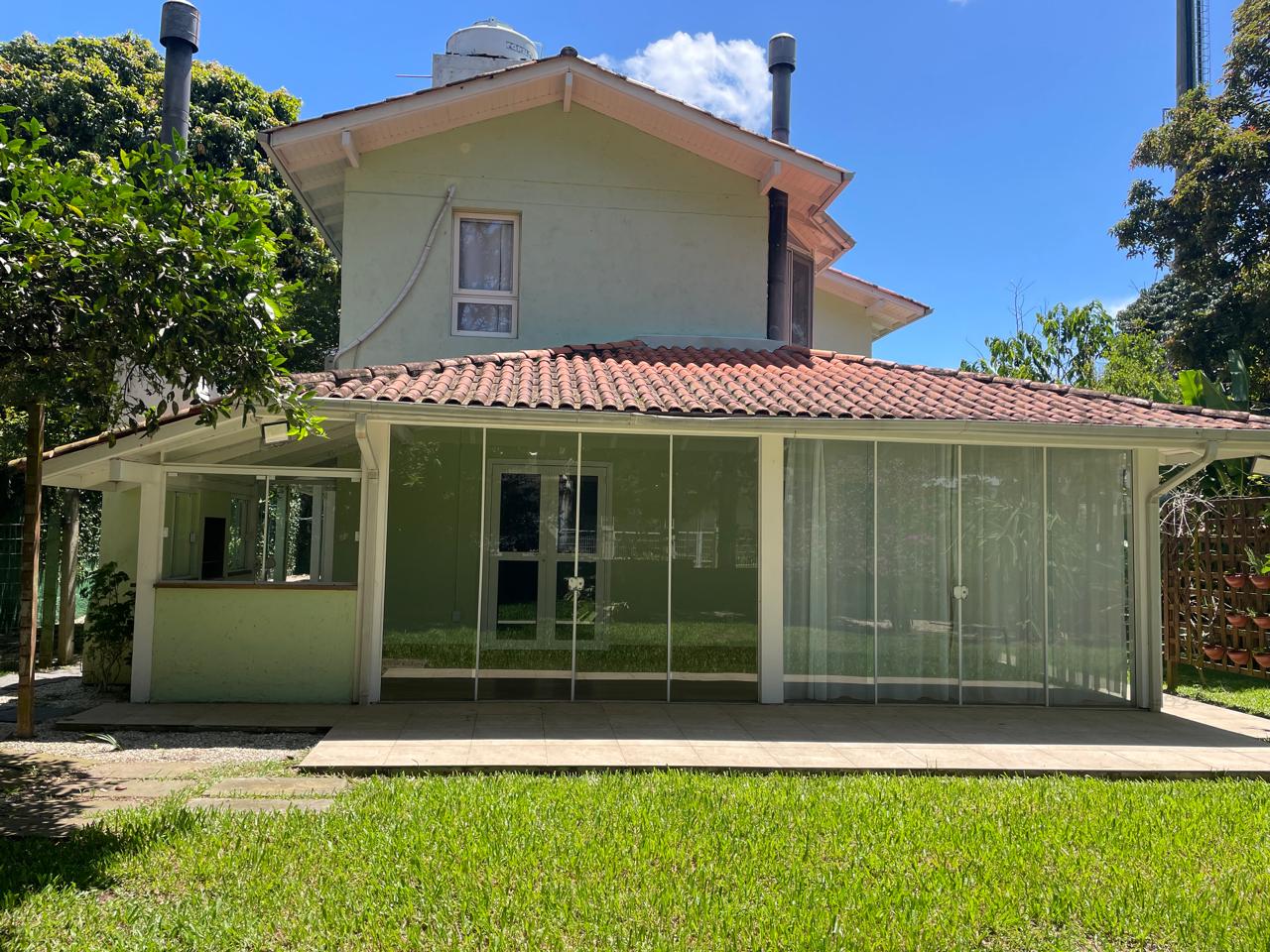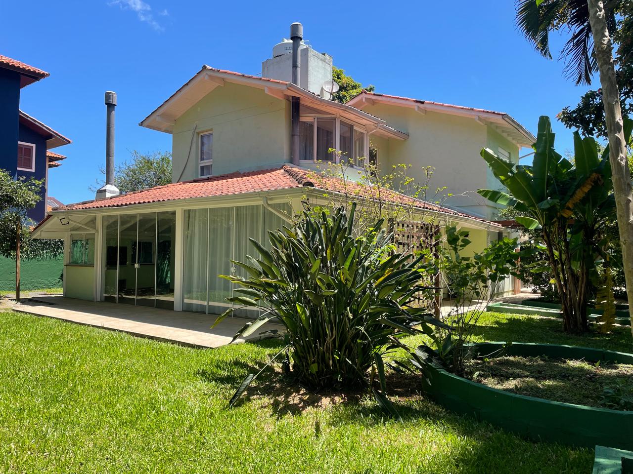 Linda residência, amplo quintal, várias árvores frutíferas, primeiro piso; lavabo, sala de TV, escritório ( com ar condicionado ), ampla sala com lareira ( com ar condicionado ), espaço gourmet com churrasqueira, cozinha, área de serviço, dispensa, dependência de funcionários completa e 4 vagas de garagem ( 2 descoberta e 2 coberta ). Segundo piso; ampla suíte ( com closet ) com ar-condicionado, 1 suíte júnior com ar condicionado, mais um dormitórios com ar condicionado e banheiro social.