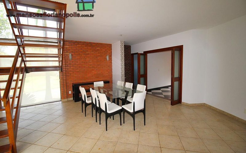 Linda residência, de alvenaria, 2 pisos, localizada em condomínio fechado de alto padrão no Campeche. Casa com ampla sala ( 3 ambientes ), lareira, lavabo, cozinha com armários e eletrodoméstico, home Office, banheiro social, 3 dormitórios ( sendo 1 suíte com closet e banheira de hidromassagem ) com ar condicionado Split e lavanderia. A residência possui 2 churrasqueiras ( uma interna e outra externa ), canil, amplo quintal gramado e garagem coberta para 2 carros. O condomínio possui uma linda piscina, salão de festas, quadra de tênis, academia de ginástica e parque infantil.