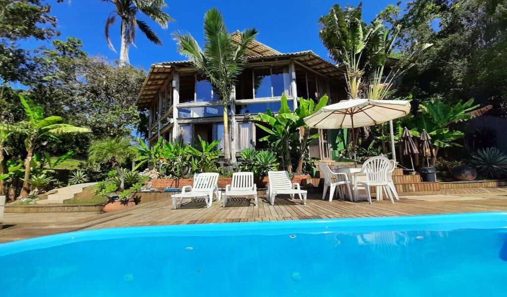 Casa com 500 metros quadrados, ideal para famílias, com inspiração no estilo Indonésio da ilha de Bali, estamos cercados pela natureza, são 5 suítes com ar condicionado, piscina panorâmica, deck com mais de 180 metros quadrados com vista maravilhosa para o mar.
