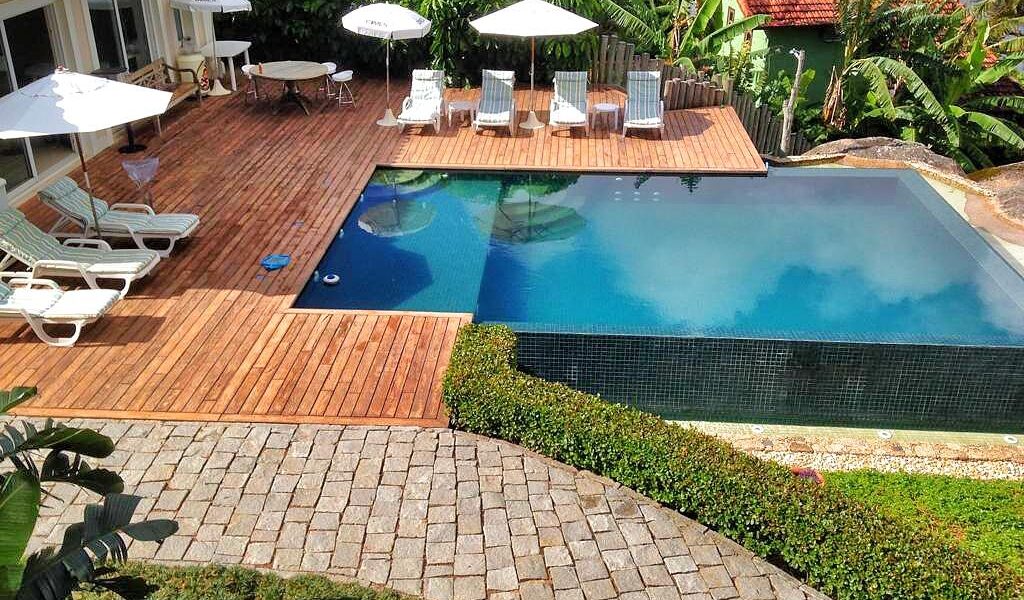 - – Piscina de concreto com 3 bordas infinitas e lago incorporado, perfeita para relaxamento e lazer.