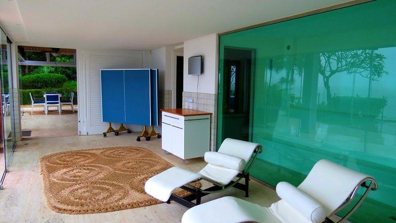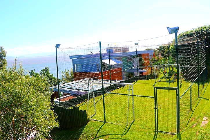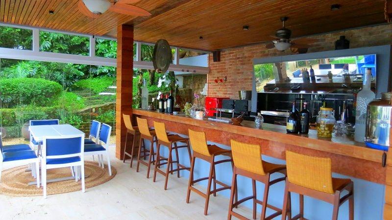 Terreno e Lazer: A mansão ocupa um terreno amplo, com pomar e quadra de futebol no topo. O condomínio conta com um clube náutico, trapiche fixo com deck flutuante, heliponto, quadra de tênis, trilhas ecológicas, mirante, bosque e orquidário.