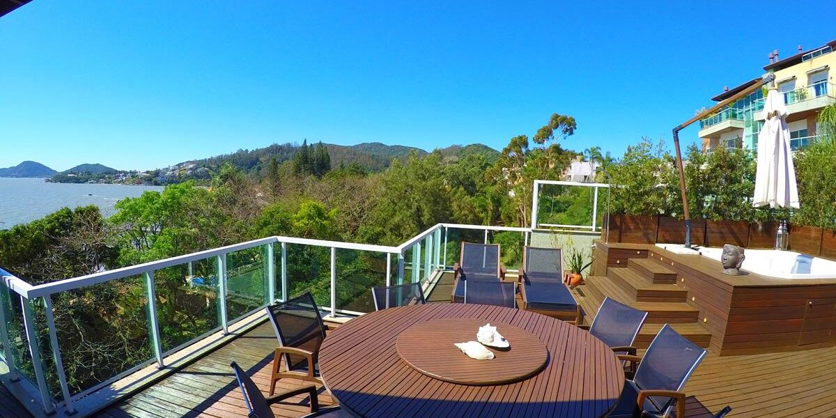 Linda coberura, dupléx, em condomínio de altíssimo padrão em frente ao mar, vista deslumbrante, com acesso exclusivo para a praia para os seletos moradores.Entrada e saída privativo dos moradores para jet-ski.Trapiche particular e privativo dos moradores para lanchas até 60″. O condomínio ainda conta com piscina aquecida. academia, sauna e portaria 24:00.