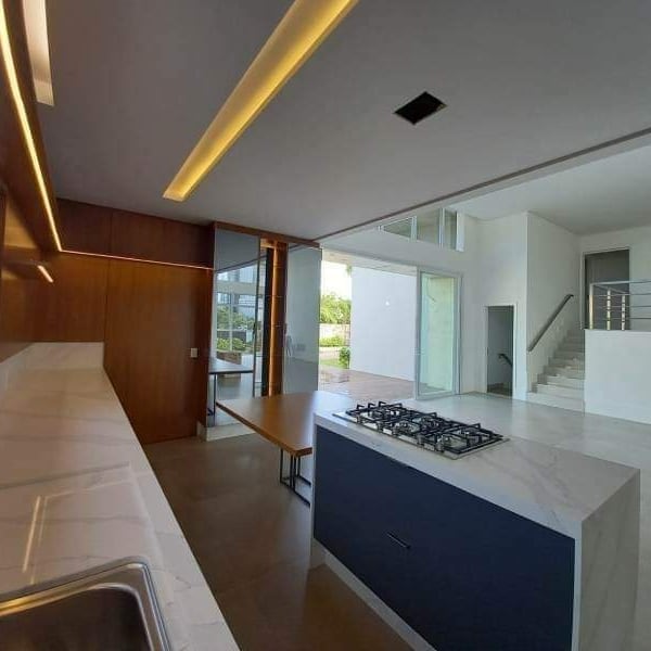 4 Suítes; Suíte Master com banheira de hidro; Estar íntimo; Escritório; Cozinha integrada; Dependência de empregada; Depósito; Vagas para cerca de 04 carros; Piscina em concreto armado; BWC apoio para Piscina.