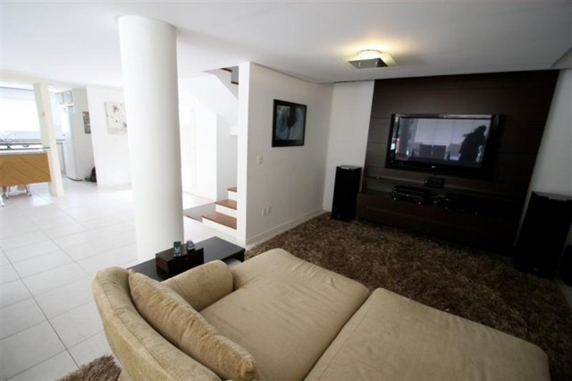 Linda residência em condomínio fechado, frente para o mar, sendo 3 pisos, ampla sala, lavabo, espaço gourmet com churrasqueira, lareira, piscina e ofurô, ampla cozinha com armários, área de serviço e dependência de empregada, 4 dormitórios (sendo 1 suíte master com closet e hidromassagem).